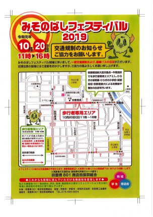 御薗橋通新大宮交差点~牛若通までを歩行者専用エリアとし、地域の小・中・高・大学生による吹奏楽やチアリーダーのパレードと組合員による屋台の出店を行います。