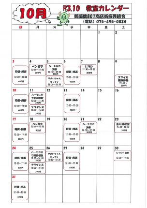 801広場 10月カレンダー
