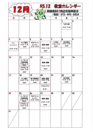801広場 12月カレンダー