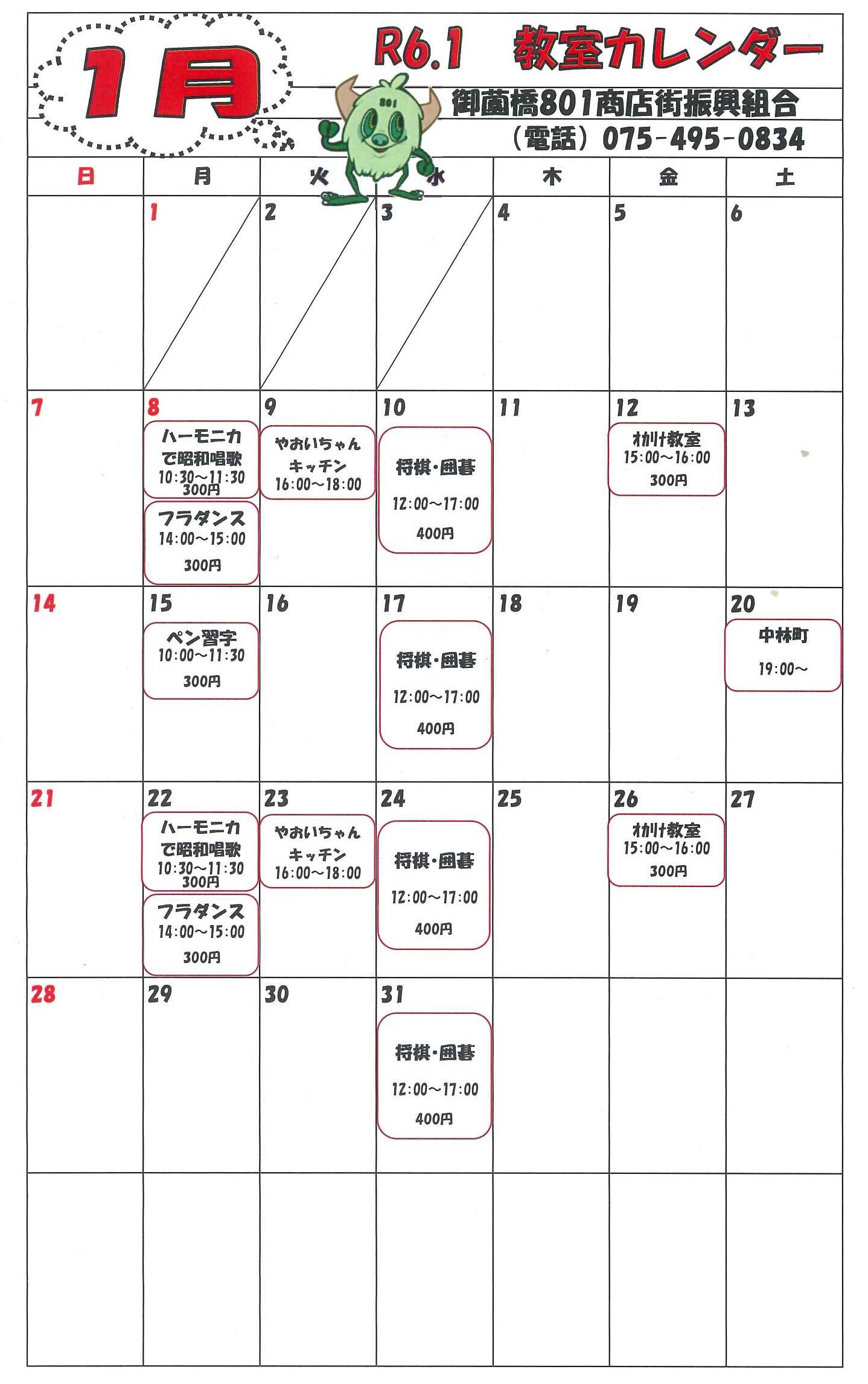 801広場 1月カレンダー